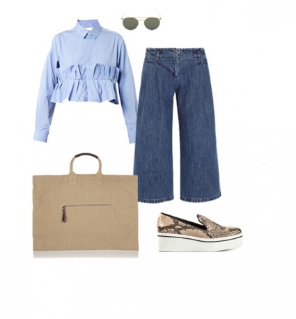 Mykita Sunglasses Toga Cropped Blouse Michael Kors Culottes M&M Willow Canvas Tote Stella McCartney Faux Python Shoes